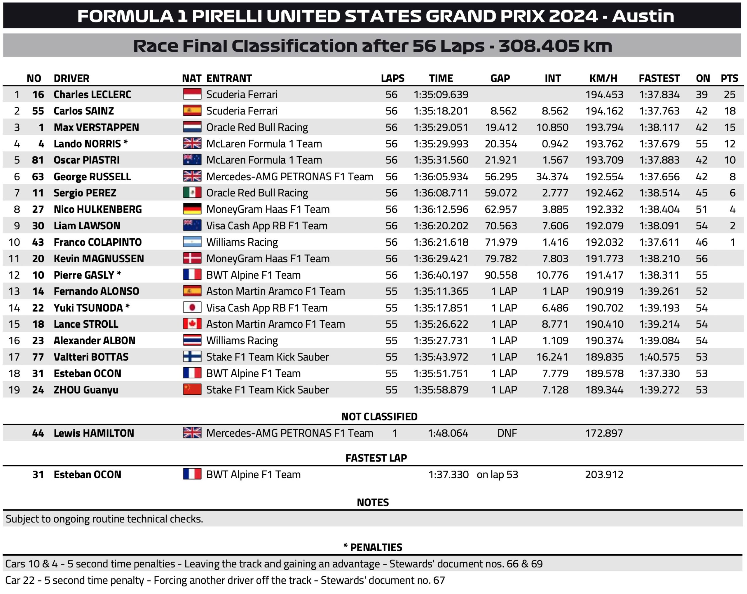サインツは「僕がハードタイヤに交換するのはかなり早かった」と振り返るが、「そこからはとても快適で、自信もあり、再び非常に速かった」。そのため、最終的な勝者であるルクレールがピットストップ後の最初の8周で一度広げたリードは、その後47周目には4.6秒まで縮まりました。そして、そのリードは安定しました。