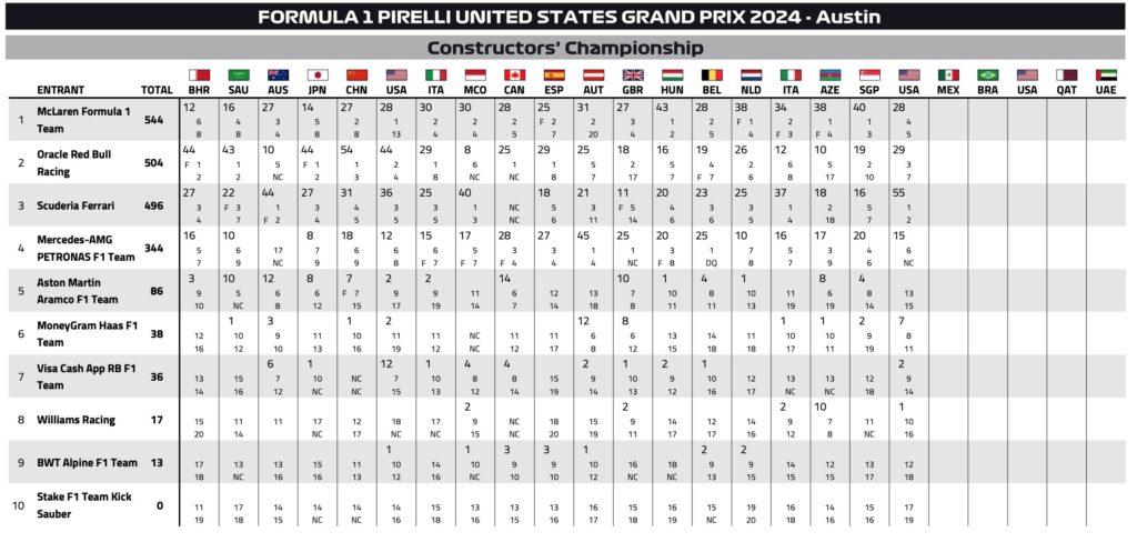 スプリントにおける平均ペースでは、2台のフェラーリに比べて、レッドブルは平均ラップタイムでわずか0.009秒のアドバンテージしかなかった。これは事実上アドバンテージがないに等しい。フェルスタッペンが空気の流れが良いクリーンエア状態で走行できたのに対し、フェラーリの2台はミディアムタイヤを序盤から激しく扱っていたため、オースティン特有のリアタイヤの熱劣化に苦しんでいたにも関わらずです。