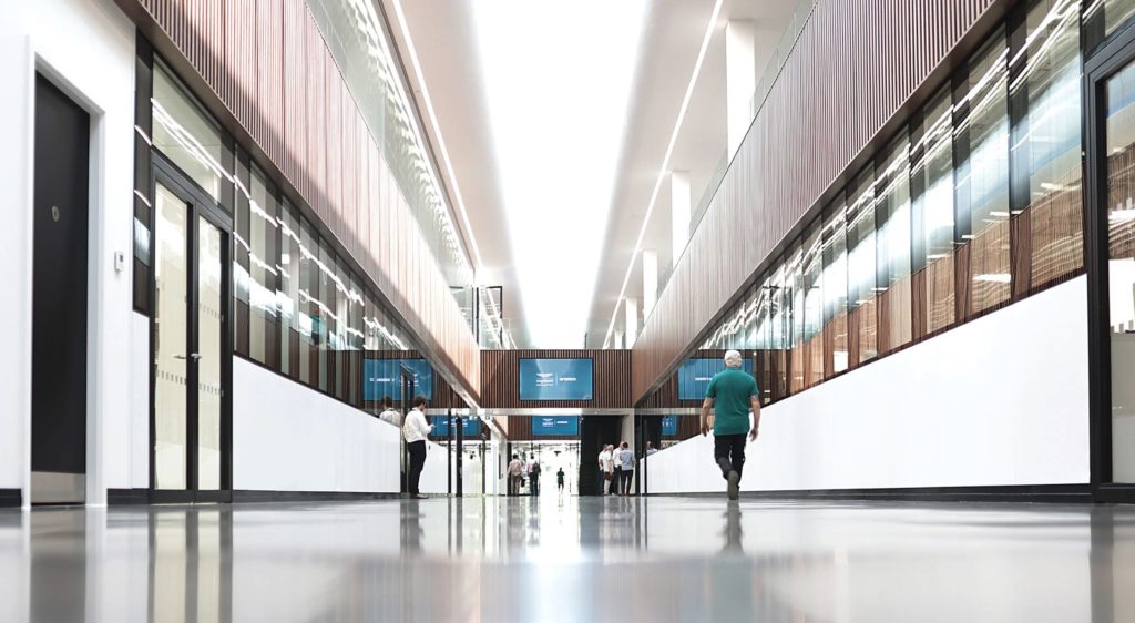 第一棟の完成は2023年7月で、オフィススペースや製造部門、電子工学、複合材料部門が統合され、160メートルにも及ぶ「ストリート」と名付けられた廊下が設置された。この廊下はチーム全体の動きを効率化するだけでなく、象徴的な存在でもある。ランス・ストロールがこの廊下をF1マシンで駆け抜けた際に残したタイヤ痕のエピソードは、施設の魅力を語るエピソードとして語り継がれている。