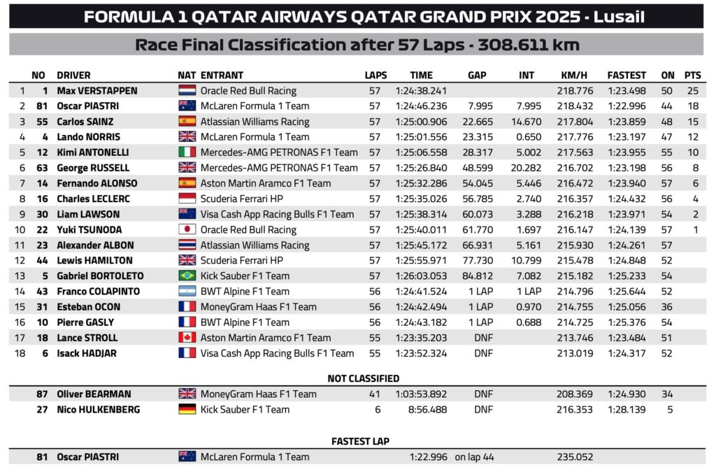 カタールGPは、単なる戦略ミスによって勝敗が動いただけのレースではなかった。むしろレースの本質は、マクラーレンが下した“唯一の(間違った)判断”が引き起こした連鎖反応と、ランド・ノリスというチャンピオンシップリーダーの揺らぎをあらわにした点にある。そしてその裏では、マックス・フェルスタッペンの冷徹な勝利と、オスカー・ピアストリの復調が、静かにタイトル争いの風向きを変えつつあった。