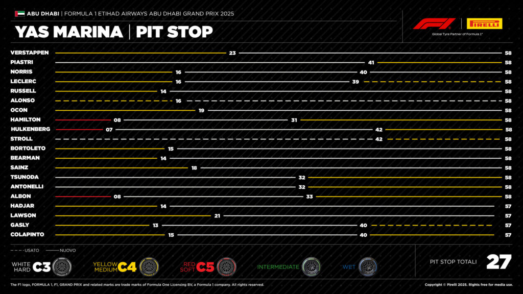 ノリスとフェルスタッペンがミディアムでスタートしたのに対し、ピアストリは唯一ハードを選択。セーフティカーが出れば優位に立てる可能性を残し、出なかった場合もロングスティントで終盤の攻勢に備える構えを取った。