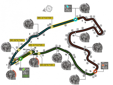 最高速度300km/h超す長い直線ケメルから中速コーナー レコンブ・リバージュ、6速の高速コーナー・プーオン、そして100km/h以下の低速ヘアピン ラ・ソースと全てのタイプのコーナーを擁し、マシンの総合力が試される。